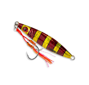The jigs are designed to flutter, then break into a darting action before returning to a flutter, imitating a dying baitfish. The lift and drop of the rod recreates the dart and flutter when keeping the jig at the desired depth.